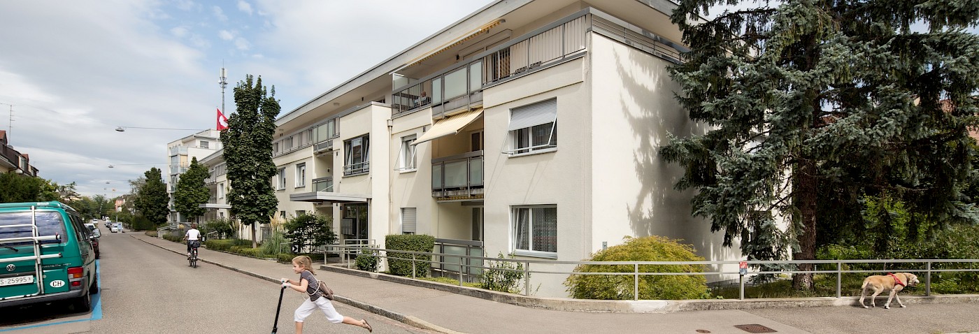 Die EBG-Siedlung Schützenmatte befindet sich im ruhigen Basler Bachlettenquartier im Neubad, an der Ecke General Guisan-Strasse und Oberalpstrasse. Auch Familien finden hier Platz. Der ruhige Garten liegt geschützt im Innenhof.