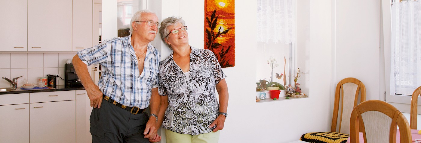 Obwohl die Kinder längst nicht mehr zu Hause wohnen, sind in den Mansarden immer noch Betten aufgestellt. So können die Familie problemlos ein Gästebett anbieten wenn sie jemand besuchen kommt. Vor einigen Jahren wurde die Wohnung renoviert und das Bad, das vorher Teil der Küche war, versetzt. Nur eine offene Küche wollten sie nicht. So kann Monika in der Küche tätig sein, und ihr Mann in der Stube nebenan ungestört fernsehen. Oder die zahllosen Zinnbecher in der Wohnwand betrachten, die aus der Zeit stammen, als er im Eisenbähnler-Kegelclub aktiv war. Daneben pflegte Hansruedi ein anderes Hobby intensiv: Das Schiessen mit Pistole und Gewehr. Die vielen Abzeichen des erfolgreichen Schützen wetteifern mit der Puppensammlung seiner Frau um Aufmerksamkeit.